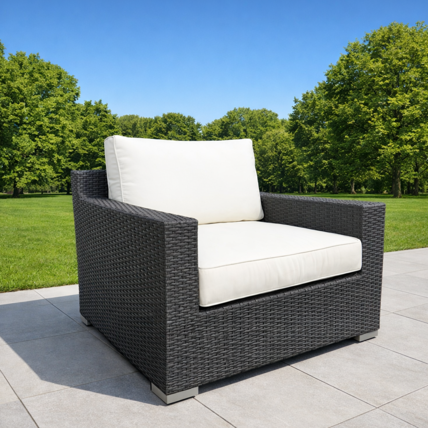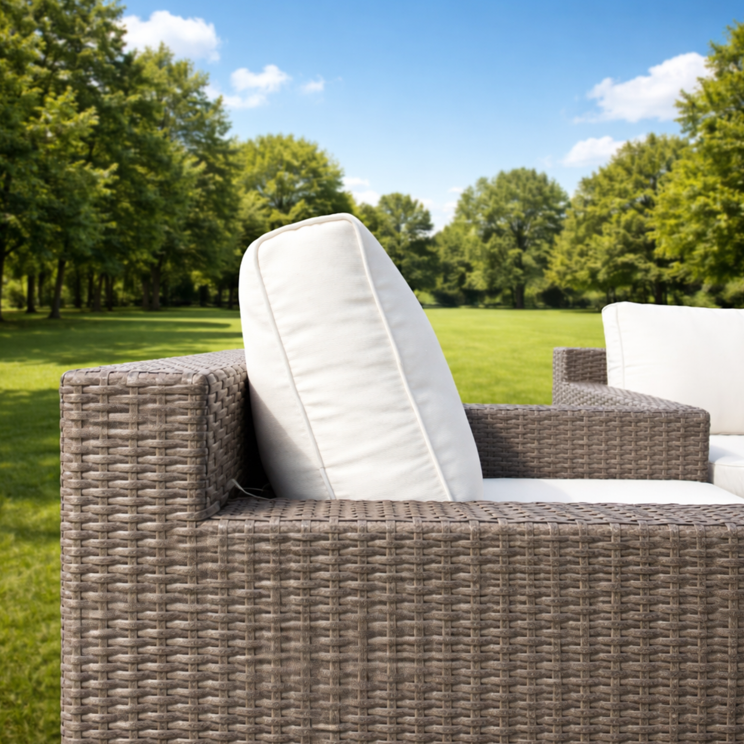 Rattan: Stylish Grey synthetic rattan, weather-resistant and easy to clean
