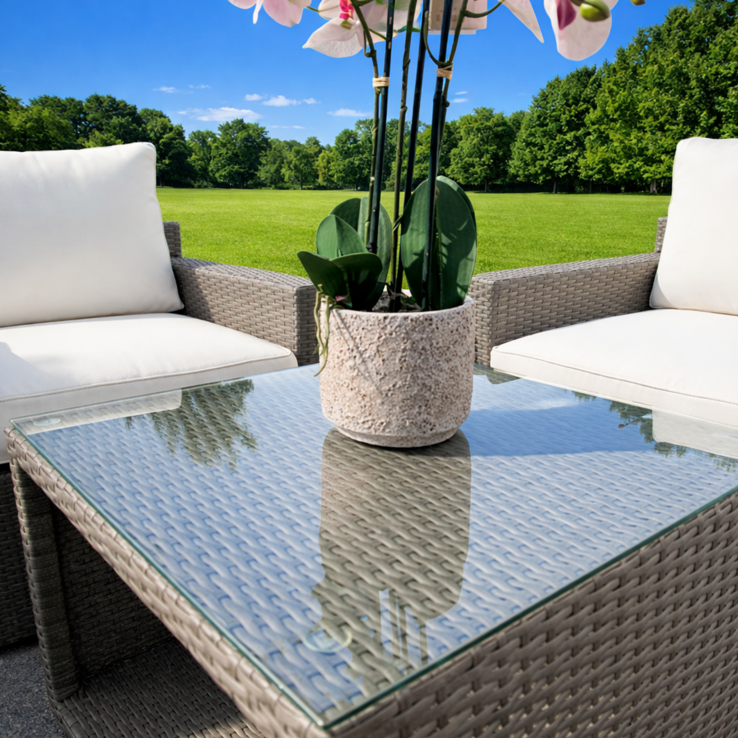 Bring style, comfort, and functionality to your home with the Blossom Deluxe 3 Piece Coffee Set, the ideal choice for modern outdoor rattan furniture and luxury patio sets.