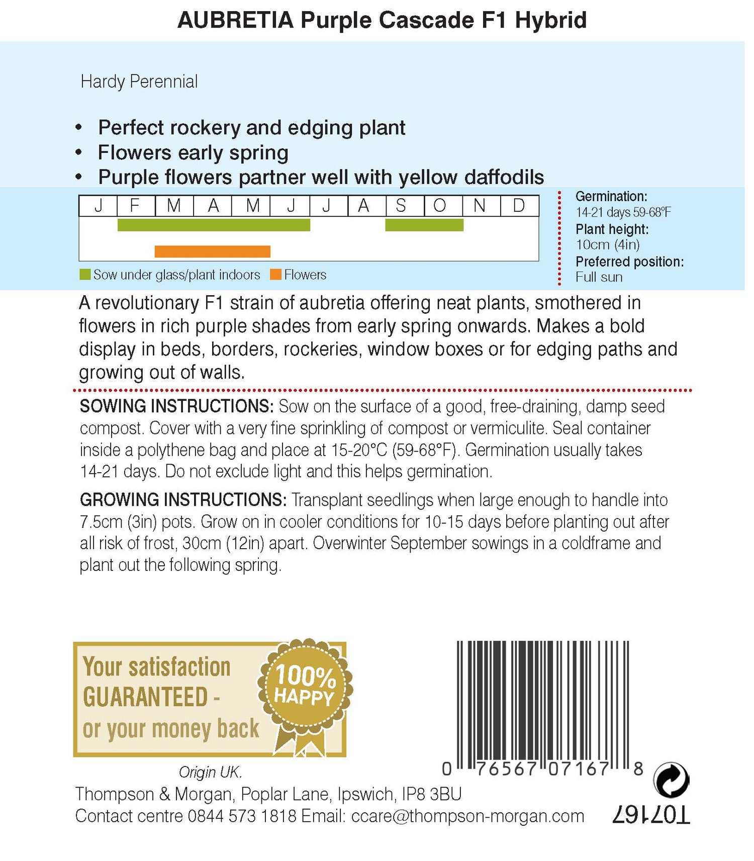 An excellent strain almost smothered in flowers in rich purple shades. Excellent for a bold spring display. Suitable for rockeries, walls, borders, edging paths, planters, window boxes etc. Flowers early spring. Spread 30-38cm (12-15in).