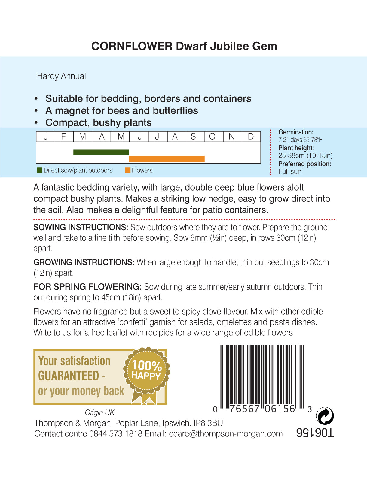 Thompson & Morgan - Cornflower Dwarf Jubilee Gem Seeds